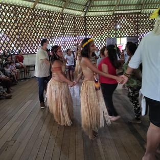 Em forma de agradecimento a prefeitura e as autoridades presentes e voluntários, as mulheres indígenas cantaram e dançaram para demonstrar a sua gratidão pela doação e também demonstrar um pouco da sua cultura.