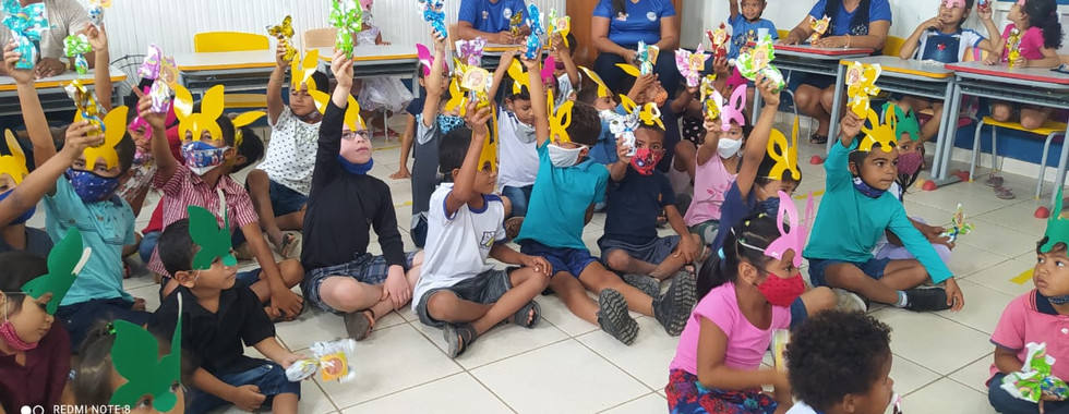 A distribuição dos ovos e chocolates de páscoa foram nas escolas municipais de ensino infantil da zona urbana - Casulo, Menino Jesus, Francisca Moreira, Toppo Gigio e Escola Infantil da Zona Rural Eugênia Morais.