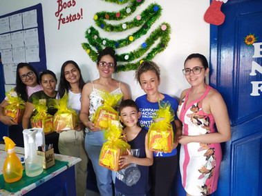 A saúde municipal distribuiu os panetones, beneficiando servidores, estagiários, funcionários da frente de trabalho, juntamente com um cartão desejando Feliz Natal e um próspero Ano Novo.
